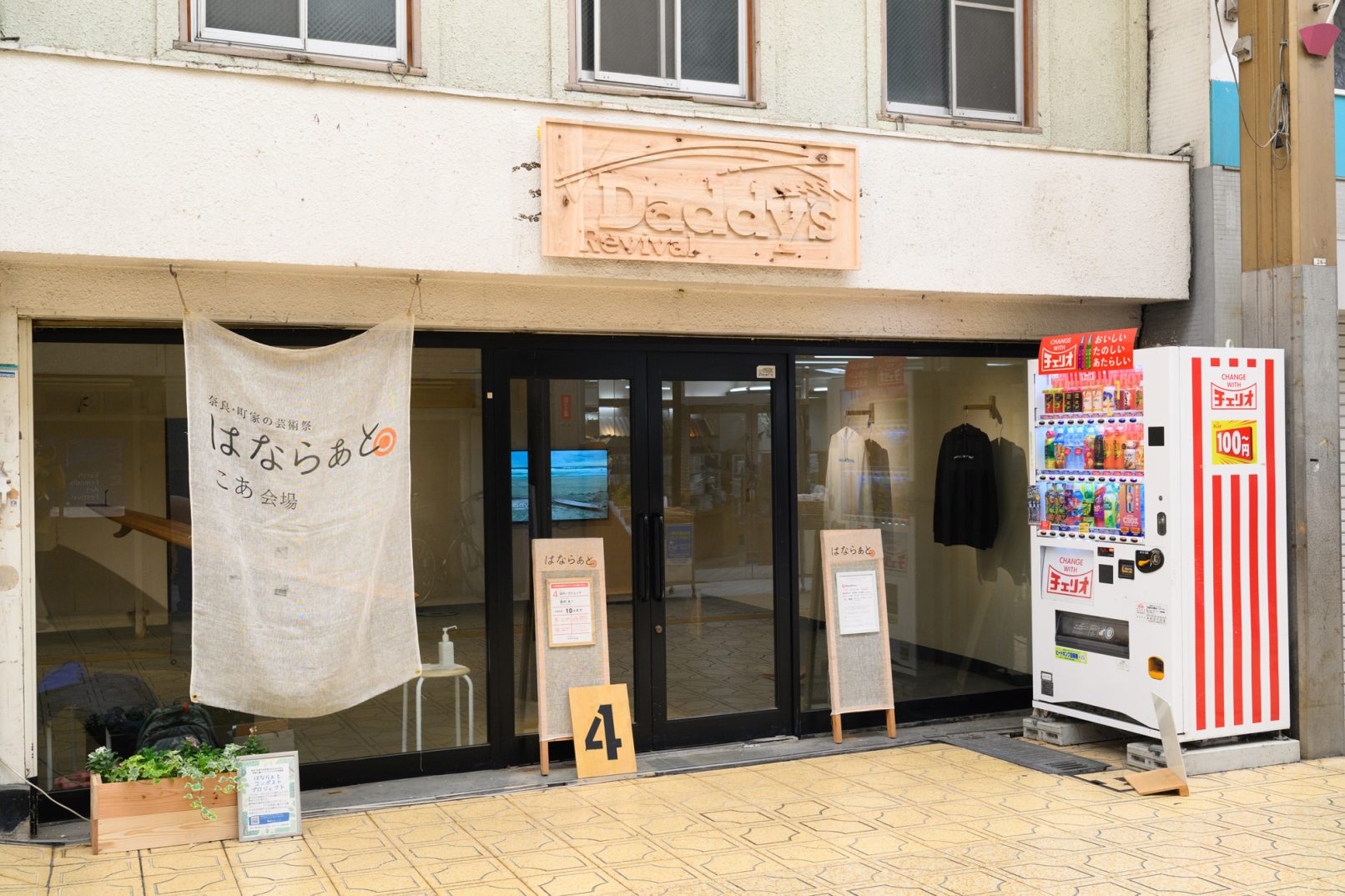 かつて、天理本通り商店街に”Daddy’s”というサーフショップが存在した。内陸県にサーフショップ?ほとんどの人がそう思うかもしれない。私もその1人だった。私ははならぁとの会期に合わせ、期間限定で”Daddy’s”を復活させることを試みた。私は木でサーフボードを作り、そのボードを持って、”Daddy’s”のオーナーが初めてサーフィンをした海へと向かった。その後、サーフボードを背負い、天理の街を見渡せる山を登った。