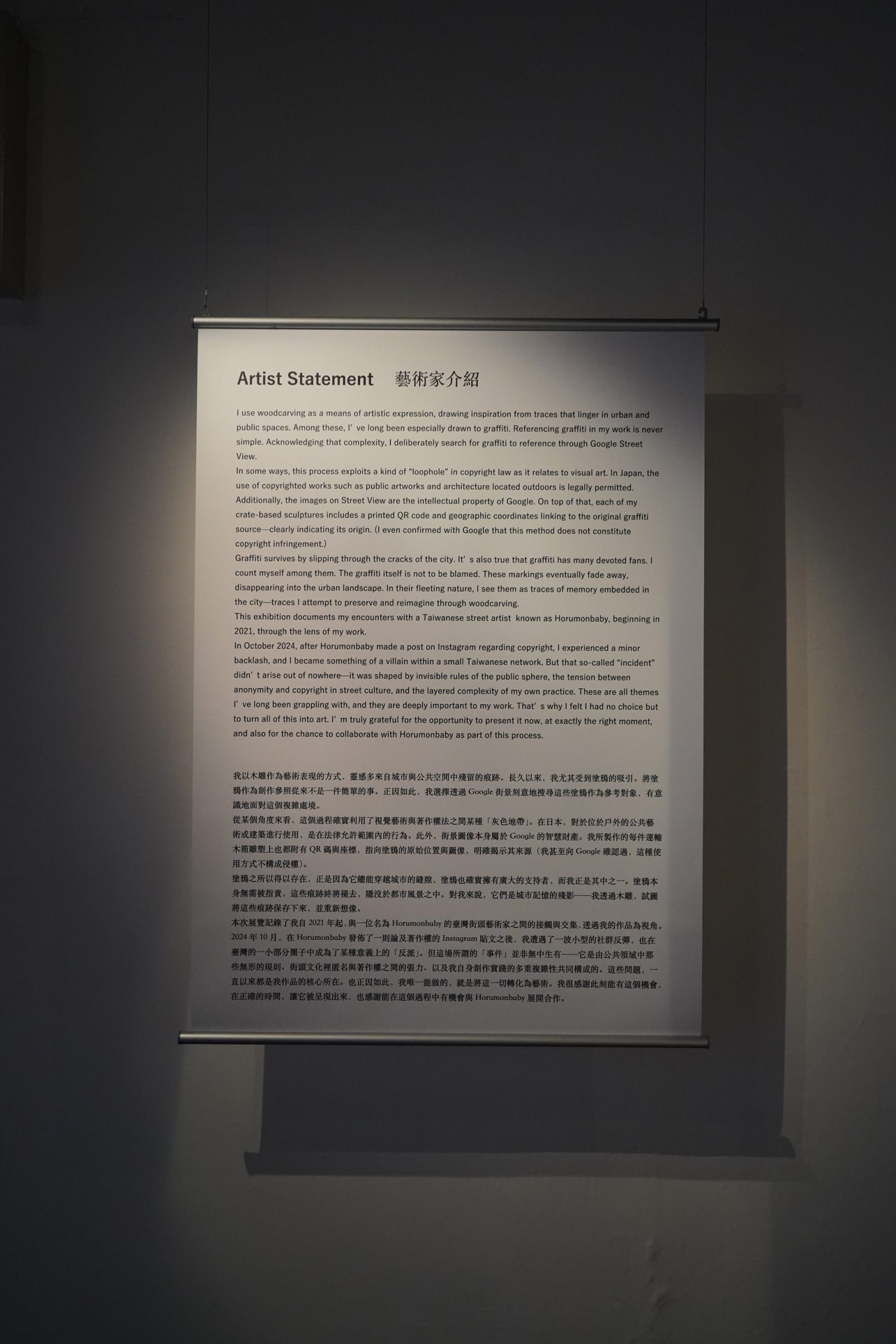 個展「High Tide」は、私の作品「ランダムエンカウント」を通して、2021年〜台湾のグラフィティーライターの“大腸王”との出会いを作品を通して記録しています。2024年10月、大腸王がInstagramで投稿した内容がきっかけで、私は台湾の小さなネットワークの上で反発を受けました。しかし、その出来事は突然起きたものではありません。それは、公共空間における見えないルール、ストリートカルチャーにおける匿名性と権利の緊張関係、そして私自身の作品に内在する複雑なレイヤーによって形作られたものでした。