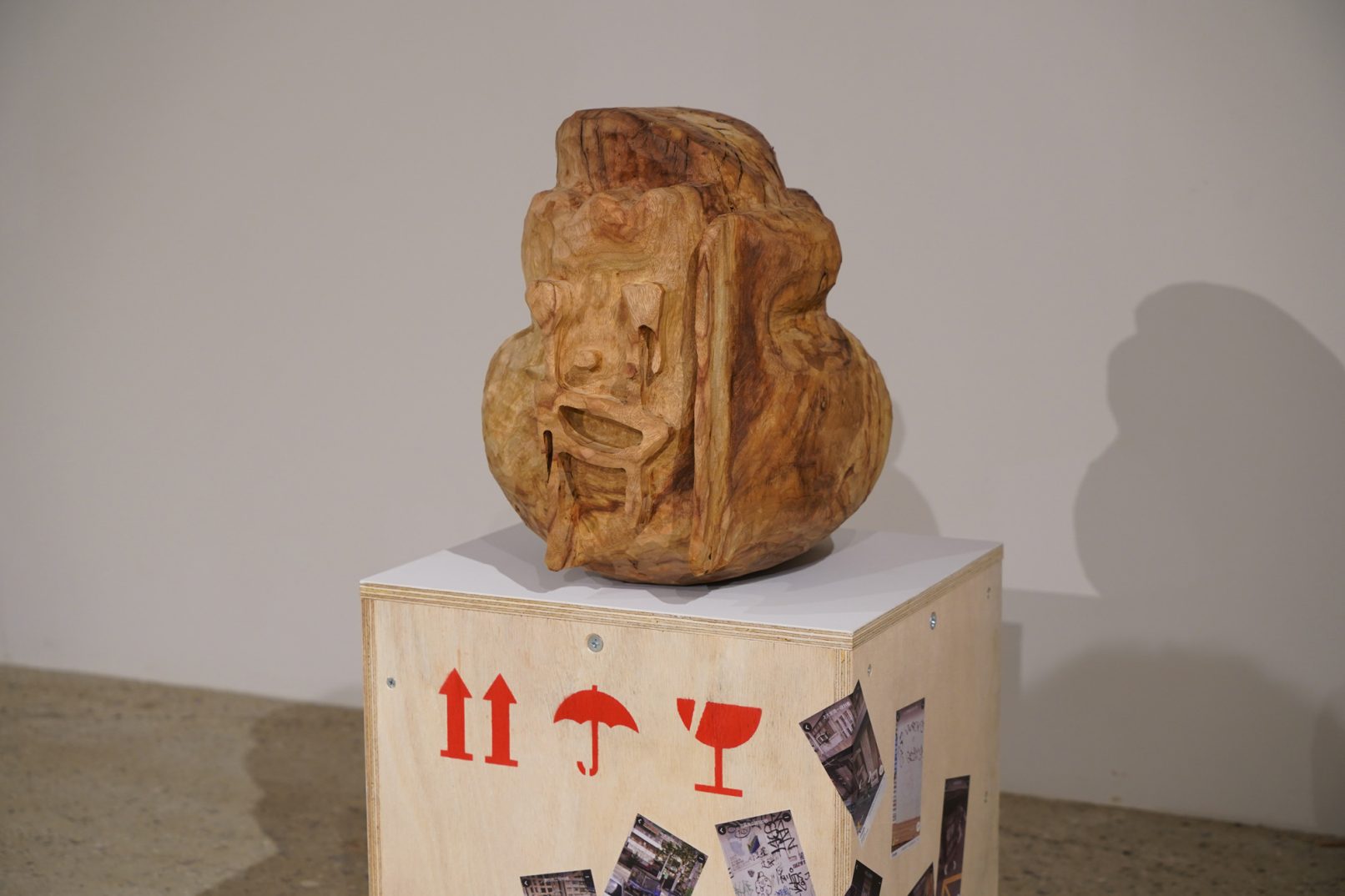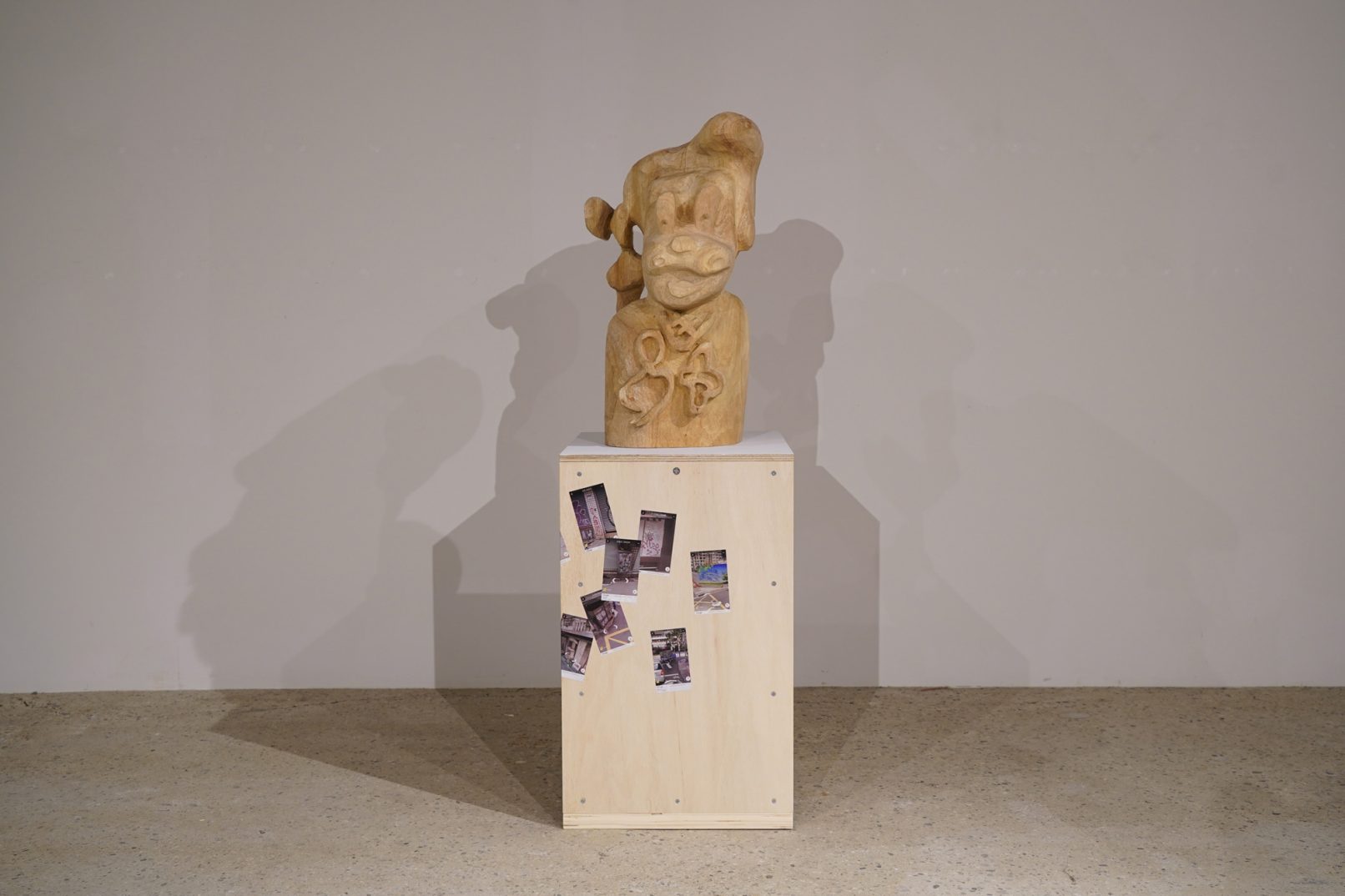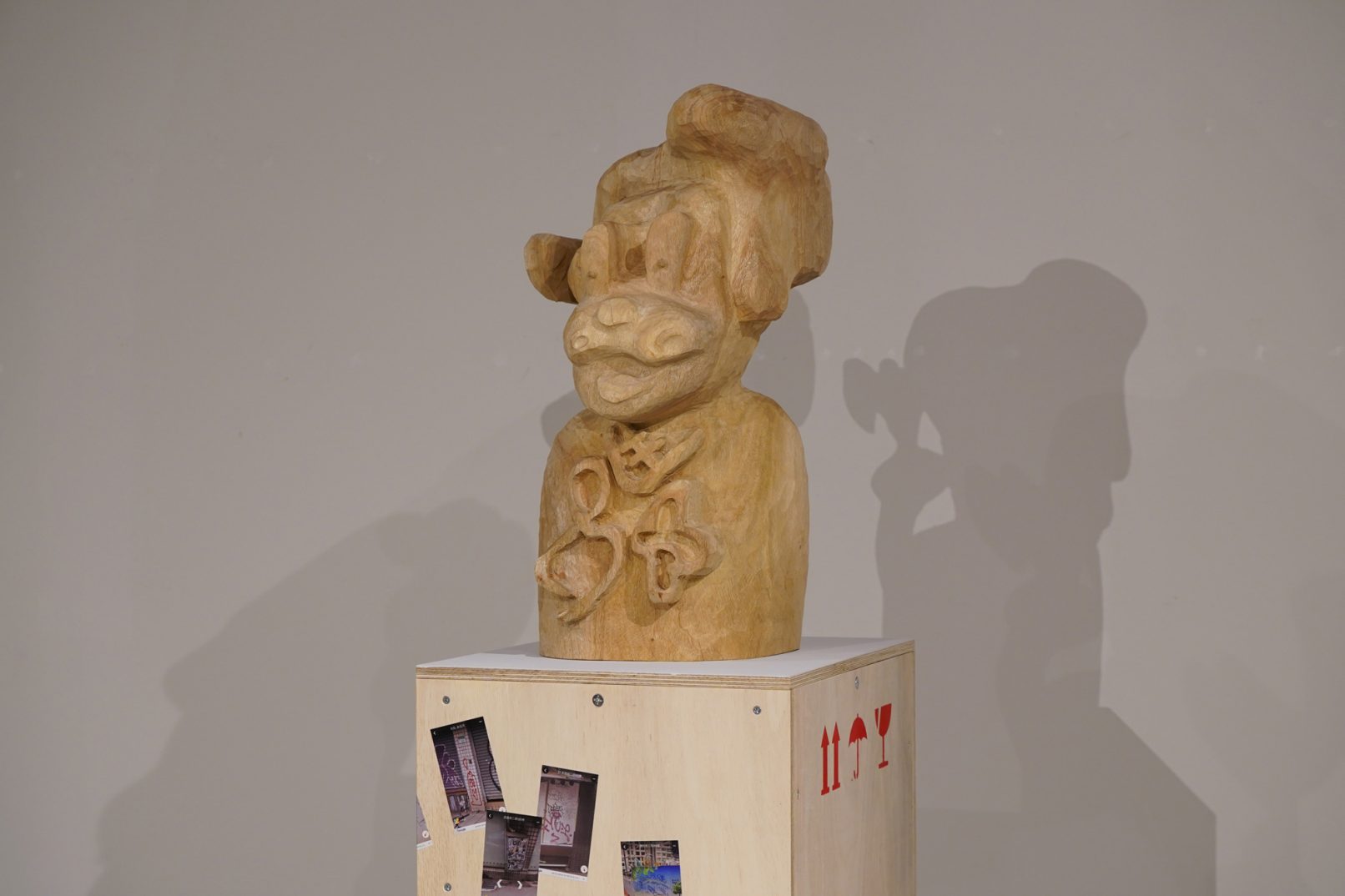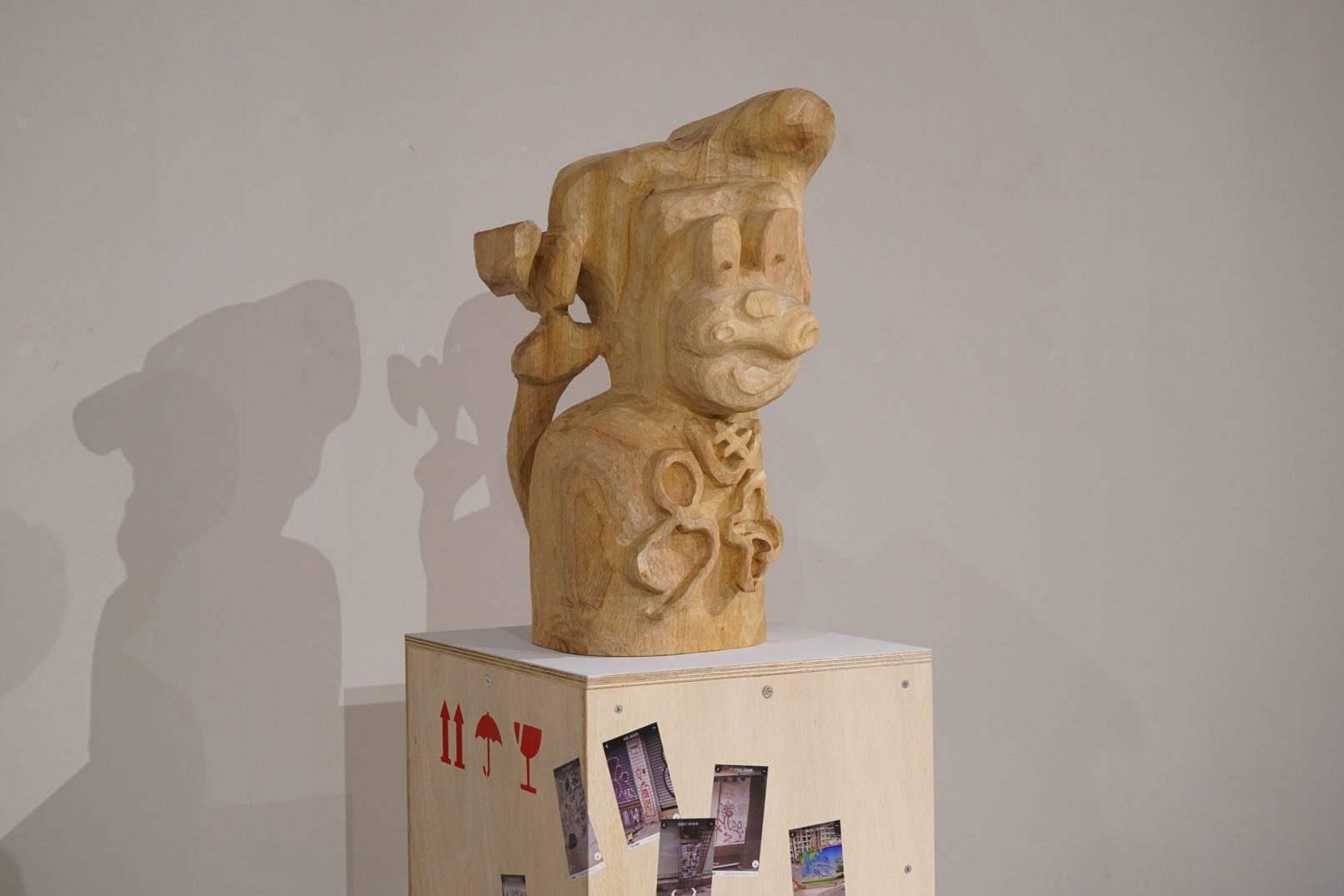 2021年、コロナ禍での移動制限の中で作品制作を行う必要があるため、従来の訪れた場所や地域に存在するする落書きを元に制作することができなくなってきた。そこで、Google earthのストリートビューを通じて制作を試た。日々スマホ上の画面を歩き、遠隔で目視した落書きに木彫で奥行きを加えていく。そこには不確かながらも潜在する「…」が浮かび上がる。