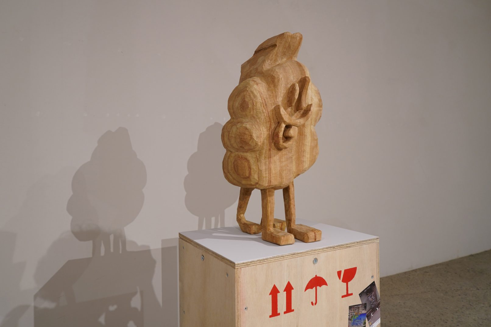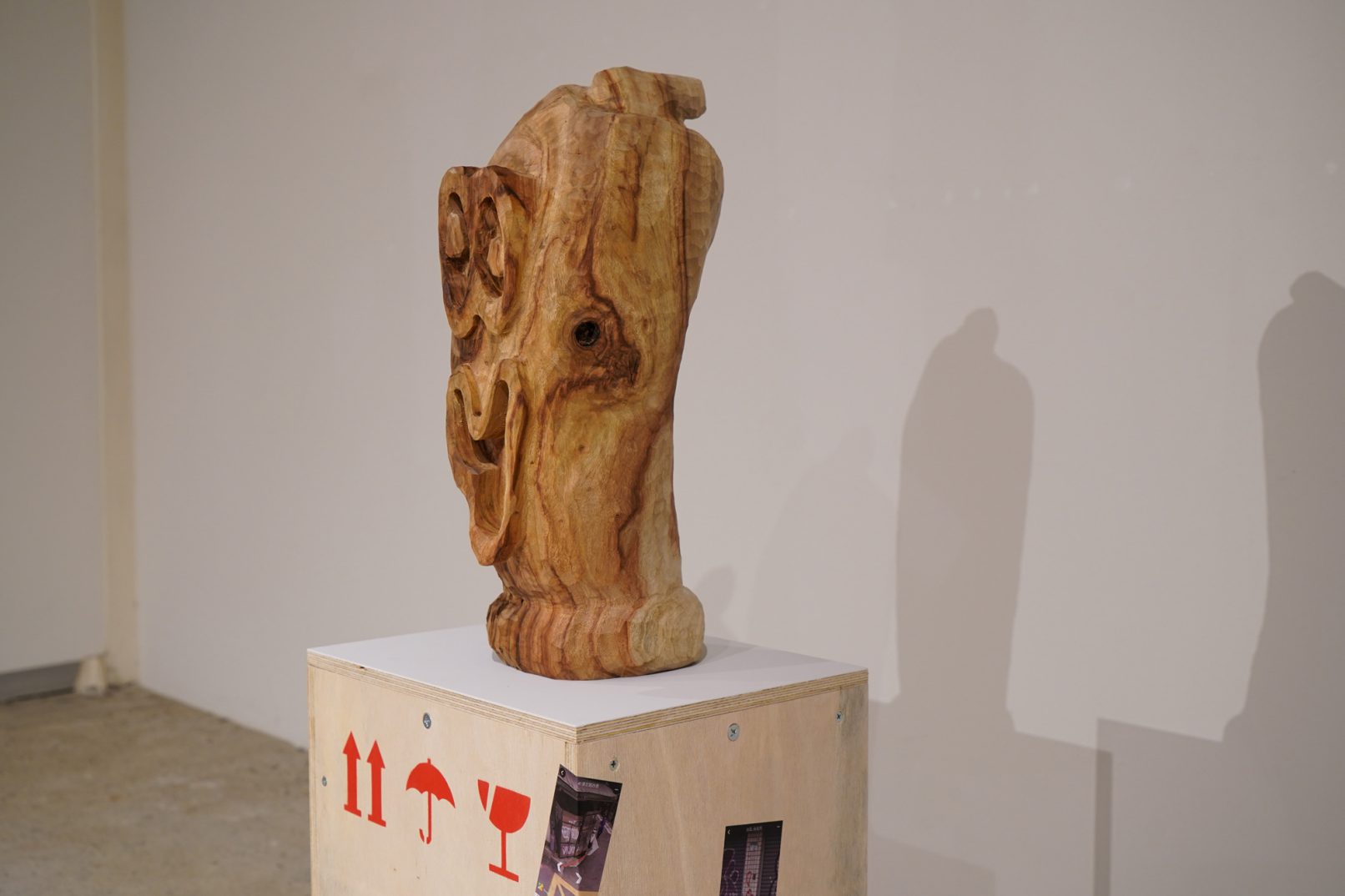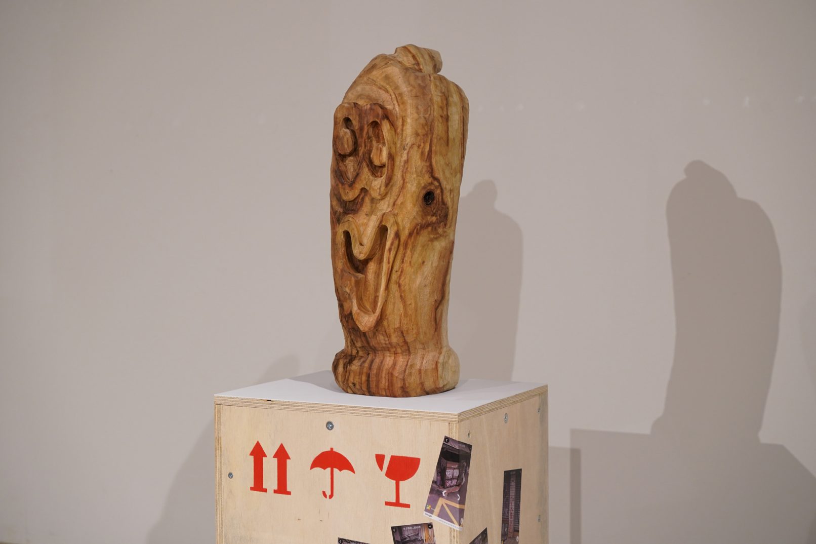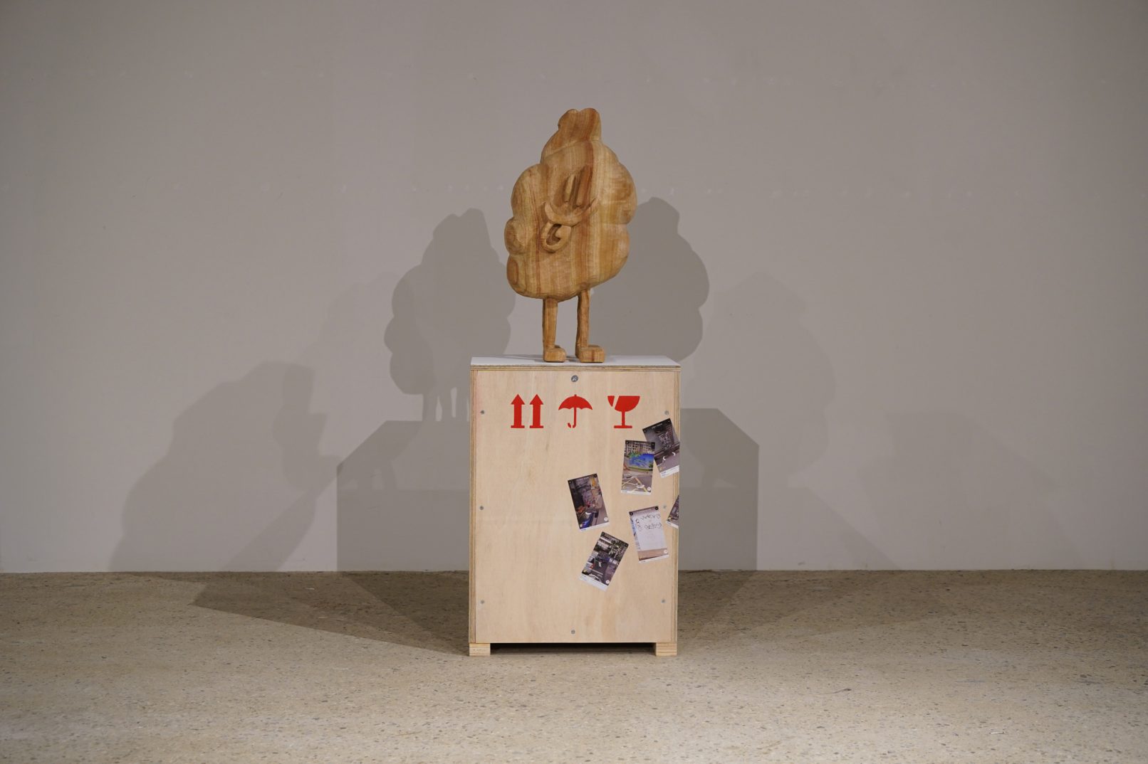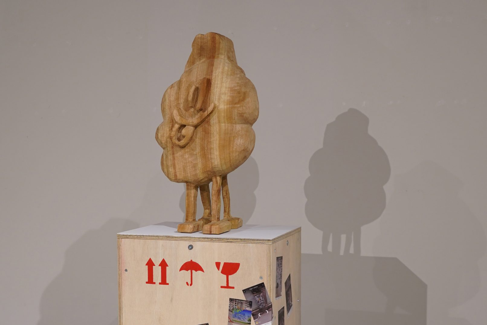 2021年、コロナ禍での移動制限の中で作品制作を行う必要があるため、従来の訪れた場所や地域に存在するする落書きを元に制作することができなくなってきた。そこで、Google earthのストリートビューを通じて制作を試た。日々スマホ上の画面を歩き、遠隔で目視した落書きに木彫で奥行きを加えていく。そこには不確かながらも潜在する「…」が浮かび上がる。