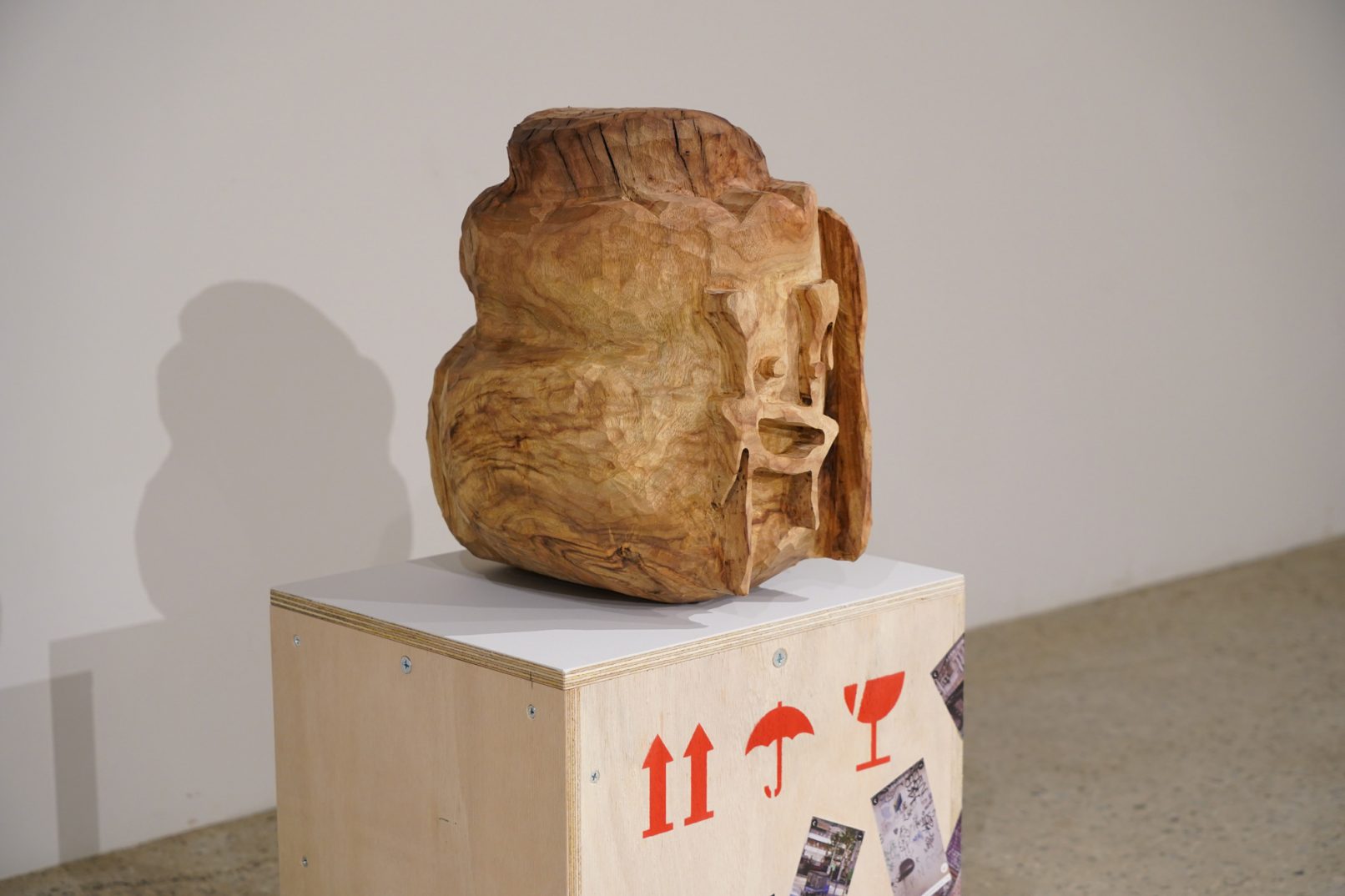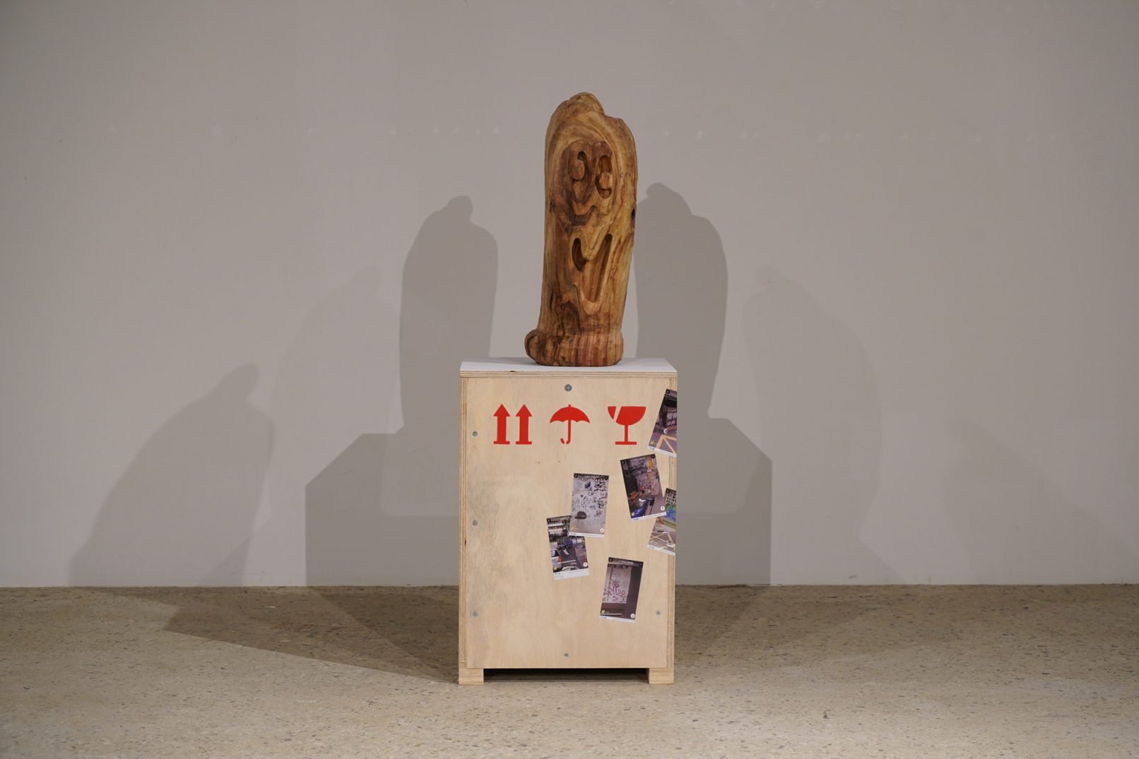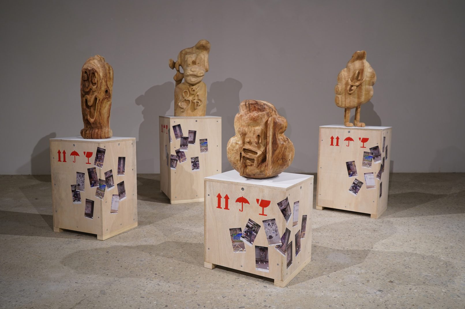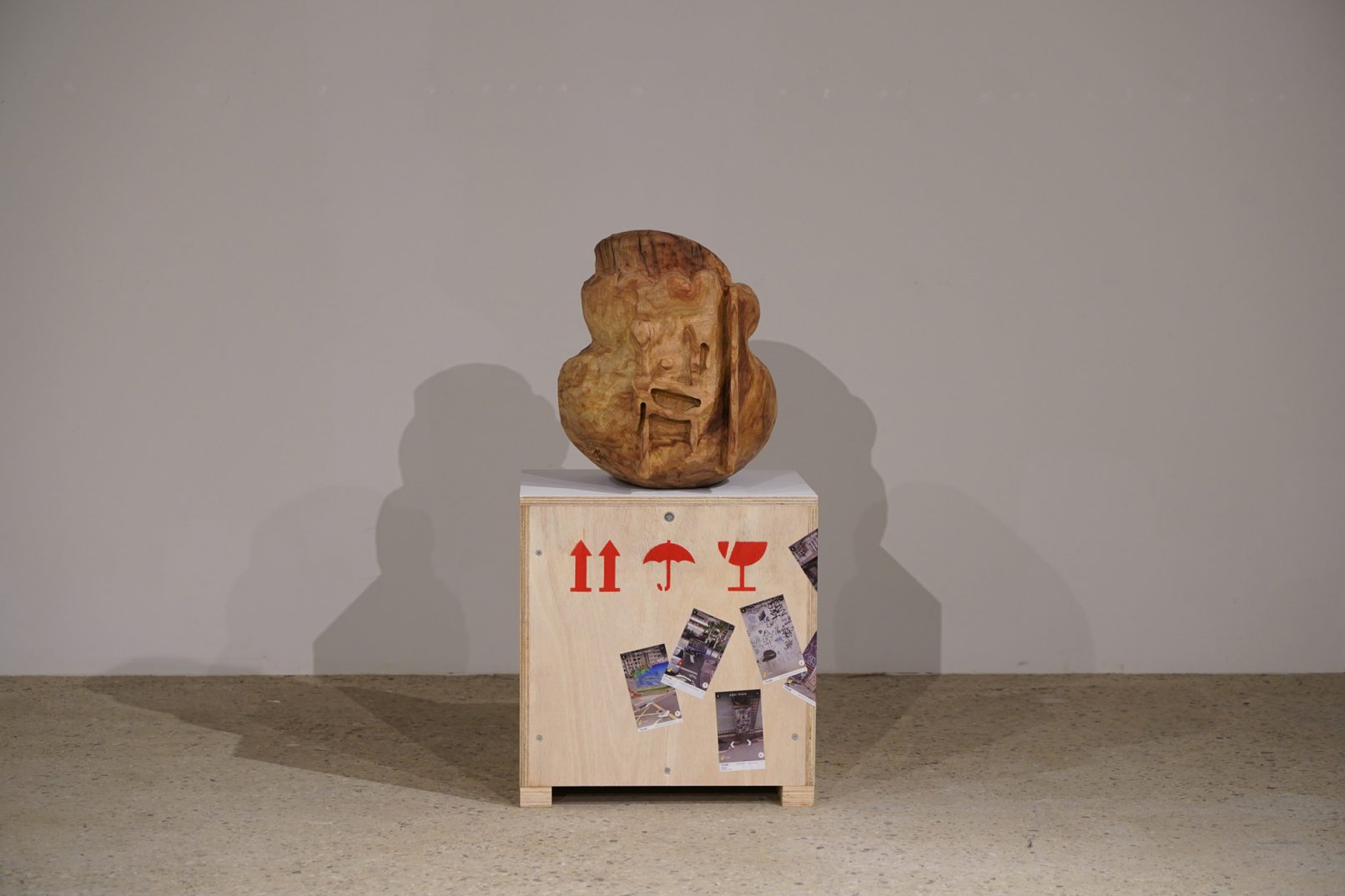 2021年、コロナ禍での移動制限の中で作品制作を行う必要があるため、従来の訪れた場所や地域に存在するする落書きを元に制作することができなくなってきた。そこで、Google earthのストリートビューを通じて制作を試た。日々スマホ上の画面を歩き、遠隔で目視した落書きに木彫で奥行きを加えていく。そこには不確かながらも潜在する「…」が浮かび上がる。